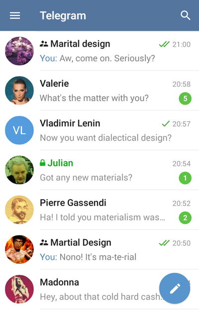 Most of these new features are also avaible to iOS fans among Telegram users — except for material design of course. In order to maintain the balance, we're also adding a few nifty features to our iOS app today. Read all about them here: